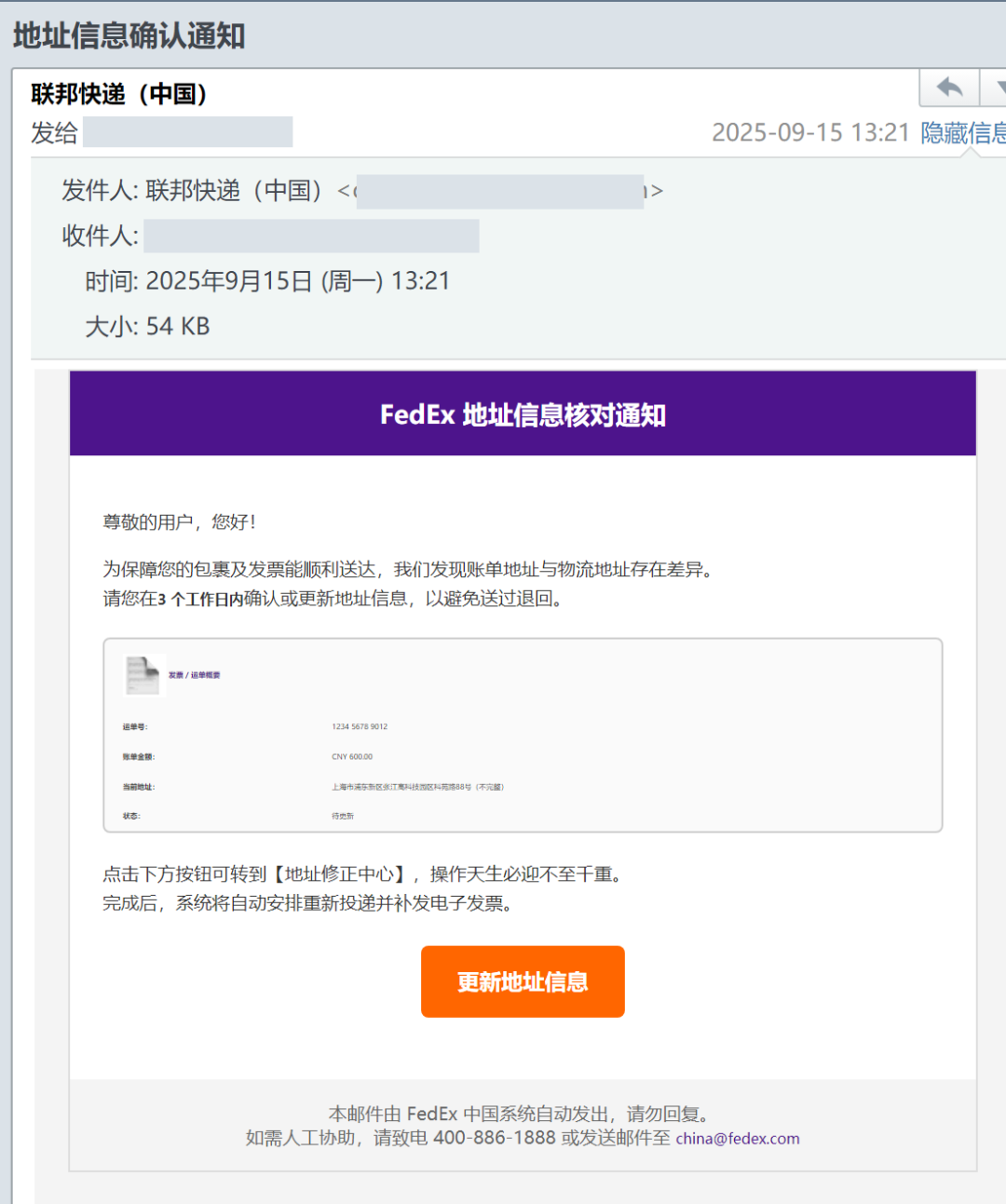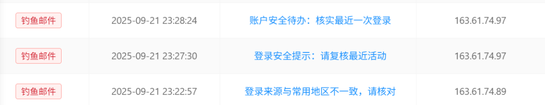 下面我们对2025年9月的TOP 5钓鱼邮件做详细的样本分析与说明: